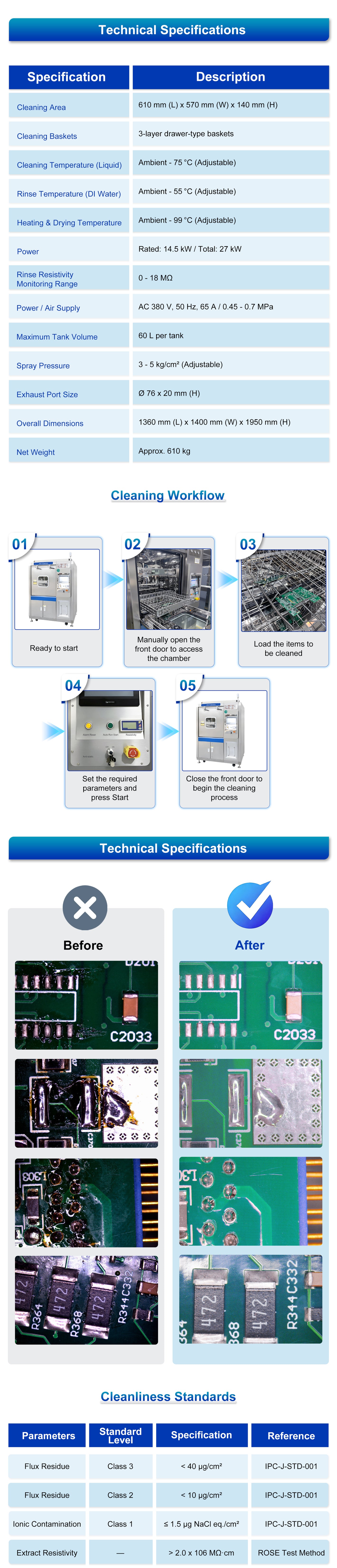- Large Capacity: Three-layer tanks and a drawer basket hold multiple PCBA boards at once.